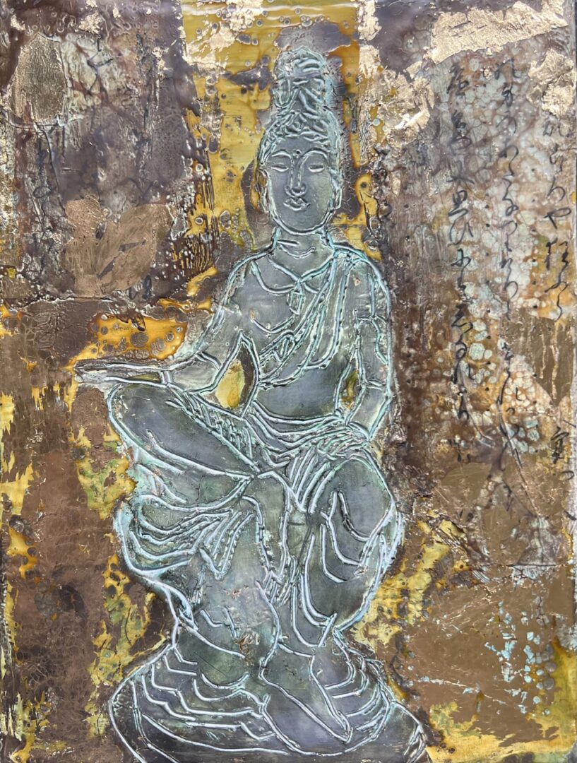 I started painting Buddha when I was going through a divorce and felt insecure about my life decisions. As I learned more about Buddhism I found a way to become stronger, self-confident, and these paintings became a form of meditation. To this day, I continue painting the Buddha as a reminder to find balance and serenity in every day life, and to trust myself.