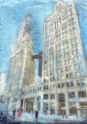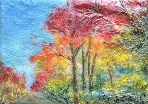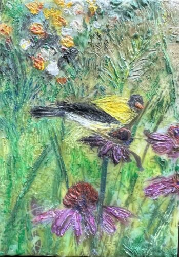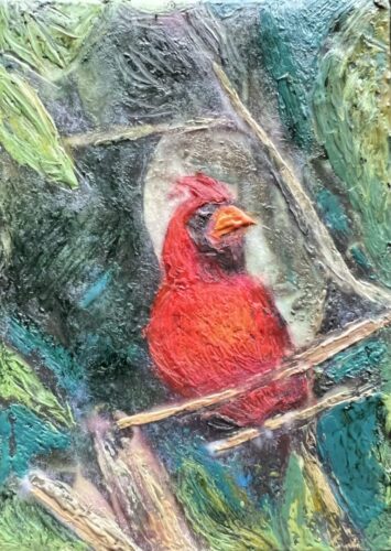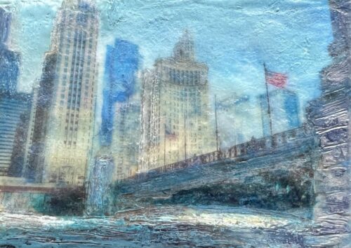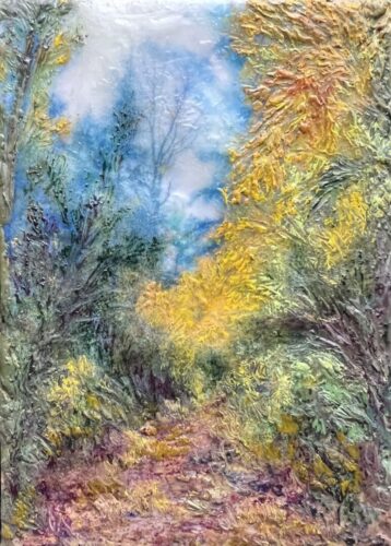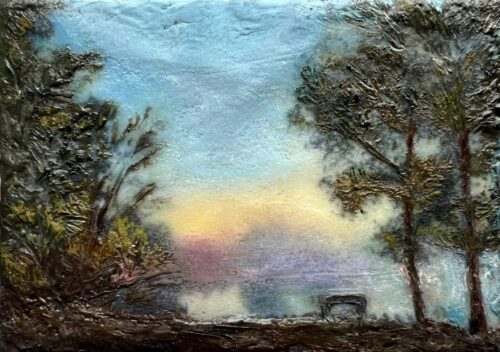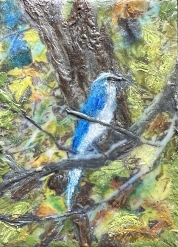 My miniature paintings are created with photographs I've taken that are transferred and fused into wax medium creating a 3-dimensional layer enhanced with pigments and oil pastels. They are presented in shadowbox frames, inspired by the same attempt to capture and transport you into another time and space, creating an intimate viewing experience.
