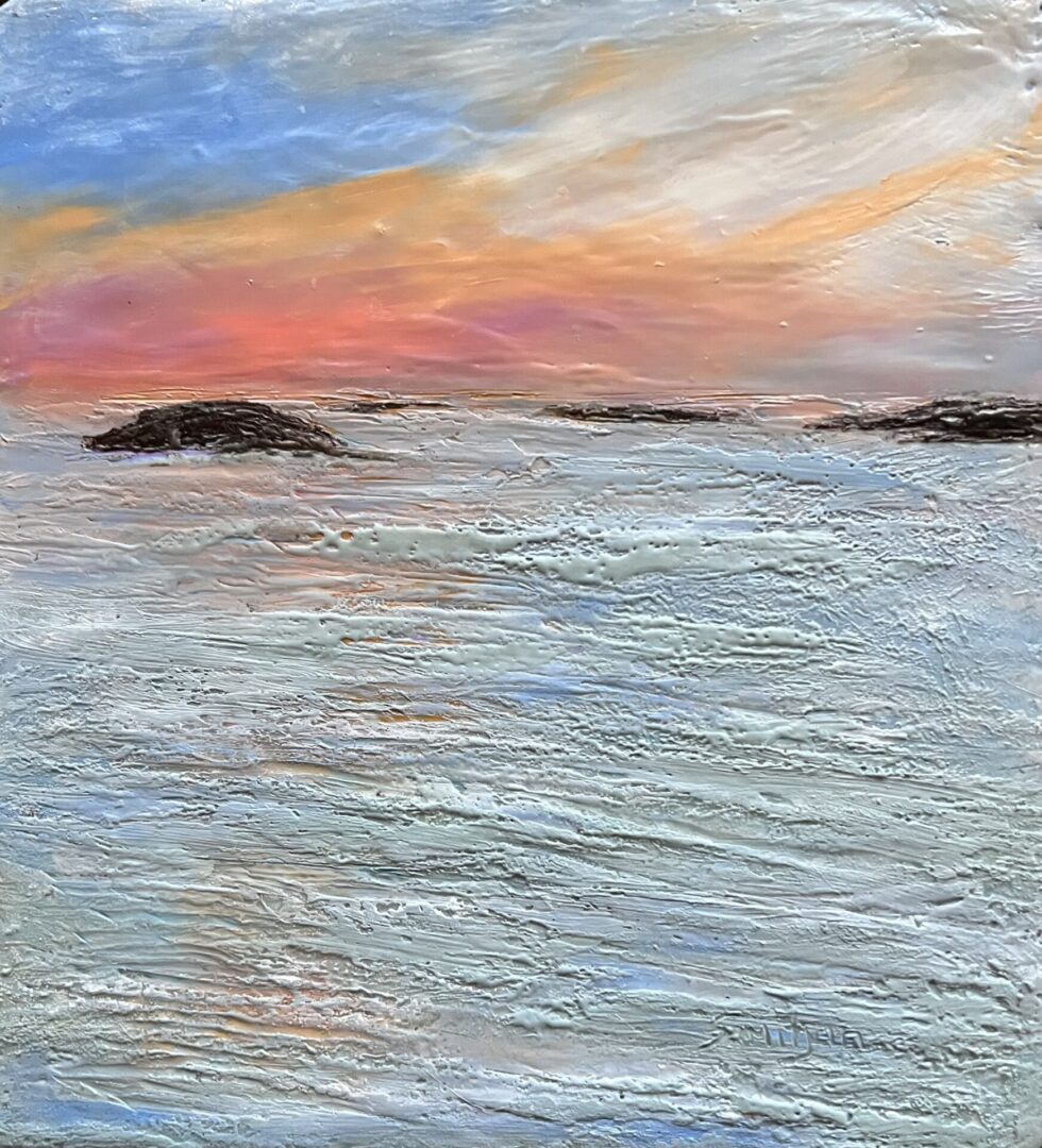 Water & Sky "The spring sea, all day ebb and flow, ebb and flow." Yosa Buson For purchase inquiries: robin@robinsamiljan.com Another Sunset, encaustic and oil sticks on board, 12"x12" Fair-weather Clouds, oil & cold wax on panel, 13"x17" Sunset, oil & cold wax on board, 12"x12" Rocks at Sea, mixed media on board, 9.5"x9" Daybreak, encaustic & oil sticks on panel, 17"x37" Low Tide, mixed media on board, 12"x15" Tide Pool, mixed media on board, 18"x18" Rolling In, mixed media on board, 12"x11.5" Splash Dance, mixed media on panel, 9"x12" Rhythmic Waves, encaustic & oil sticks, 13"x33" Crystal Clear, encaustic on panel, 12"x16" Rocky Beach, sold, 16” x 33” Gray Day, mixed media on board, 10"x13" Coastal Rocks, mixed media on board, 6” x 24” Surf and Sand, mixed media on board, 9” x 12” Before the Storm, encaustic & oil sticks, 12"x20" Rock & Water, mixed media on panel, 10"x22" Quiet Time, mixed media on panel, 9"x12"